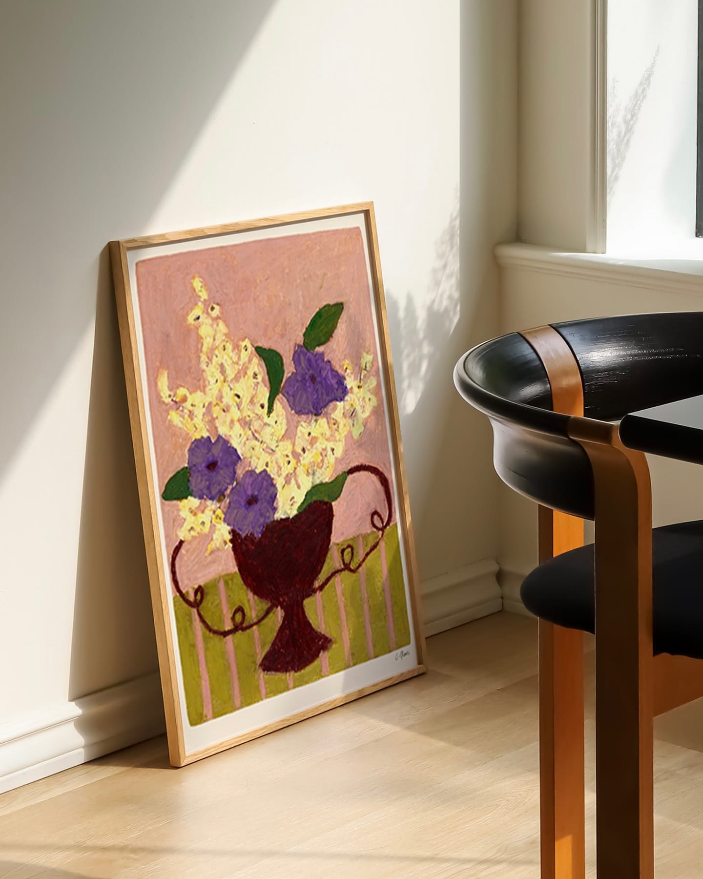 Savoir décorer les murs de son appartement peut-être un vrai casse-tête. Il y a ceux qui veulent que les oeuvres aient une histoire, une signification personnelle, quand d'autres opteront plutôt pour des affiches tendances, facilement interchangeables. Les peintures de Carla Llanos ont la particularité d'être vibrantes et de ramener un peu de soleil dans nos intérieurs. Depuis ses ateliers de Majorque ou de Bristol, ses compositions fleuries comme ses tableaux évoquant les voyages dans le sud de l'Italie illuminent la pièce et donnent un petit air d'été dont on ne se lasse pas.