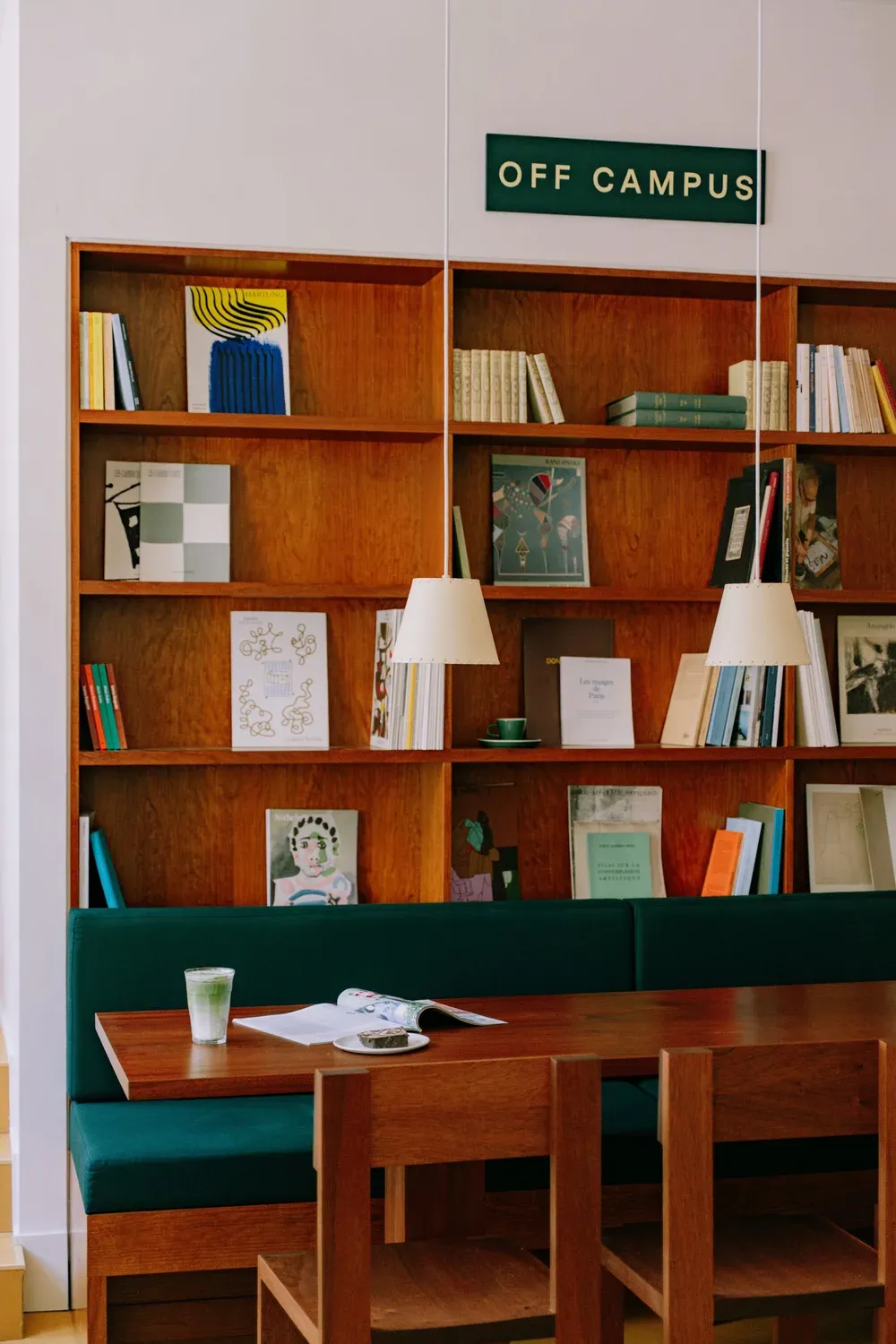 Un café-librairie qui propose également des cours du soir sur l'art et le design ? Mais aussi sur la sociologie, la psychologie, la littérature ou encore la géopolitique, pour ne citer que ces domaines ? On dit oui ! Outre l'ambiance chaleureuse de ce petit café (non, ce n'est pas une énième newsletter pour découvrir de nouveaux coffee shops parisiens rassurez-vous), on y découvre une décoration soignée et une architecture inspirante, avec un espace librairie incurvé et une bibliothèque toute hauteur. On a déjà hâte de tester le concept en soirée, pour continuer à apprendre loin des bancs de l’université.