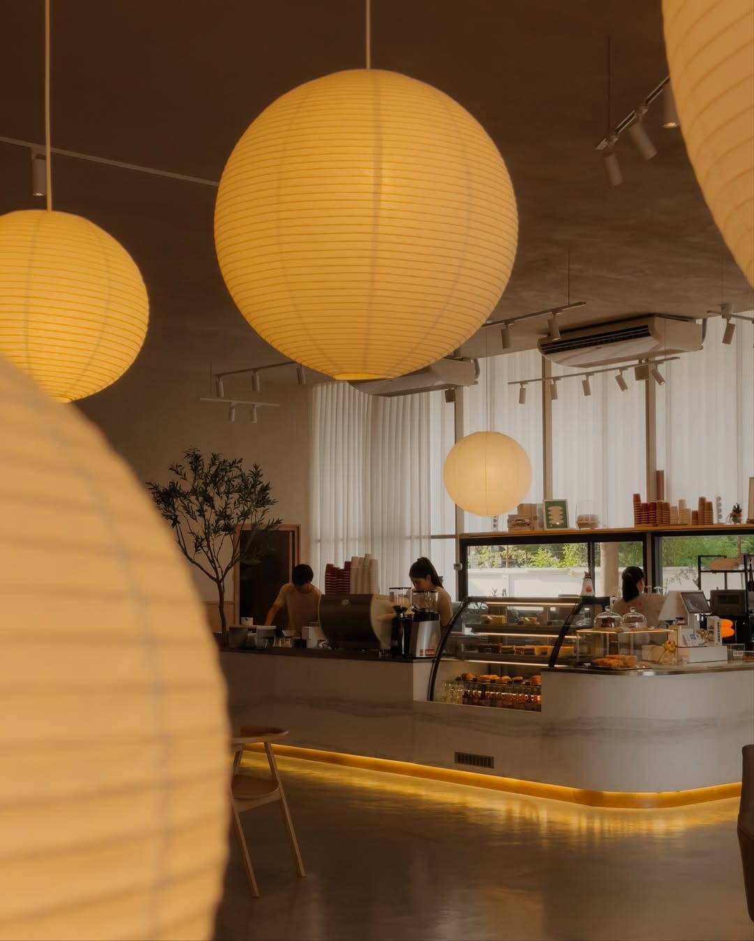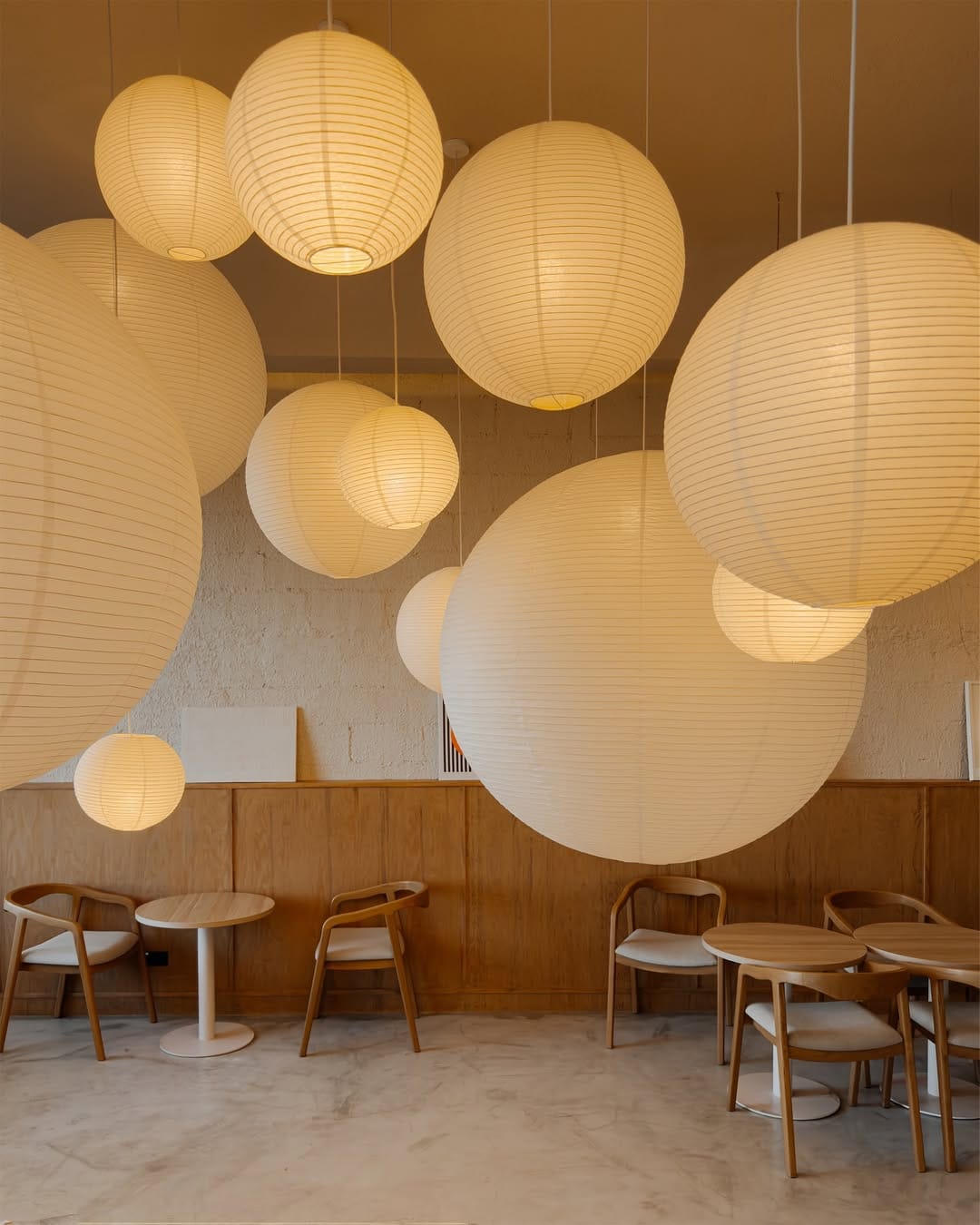 On reste en voyage avec des images de ce lieu à la décoration insolite. L'accumulation de luminaires en papier de riz nous rapproche du songe et l'on pourrait presque se dire que boire un café ou un thé là-bas serait comme être transporté sur un petit nuage. Malheureusement il faudra planifier un détour par la Thaïlande pour vivre l'expérience… dites-nous si vous y songez !