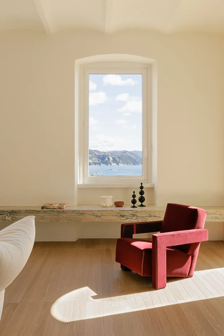 Un appartement vue sur mer, pour commencer, ça vous dit ? Cet appartement entièrement rénové par le cabinet Tuc Studio se situe sur la côte italienne, à Santa Margherita Ligure, et sa douceur rappelle les vacances, les journées d'été qui s'allongent, et la chaleur des rayons du soleil qui s'infiltrent dans la maison. Cette fenêtre sur la mer et les montagnes est divinement mise en valeur par le côté minimaliste de l'agencement, avec cette pierre naturelle qui apporte fraîcheur et tranquilité. Je vous encourage vivement à découvrir le reste de l'appartement en cliquant sur le lien en légende de l'image.